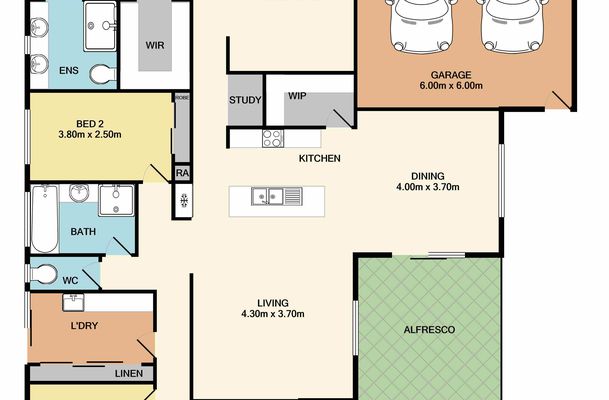 - Zoned living areas with formal lounge, study nook & open plan dining and family room